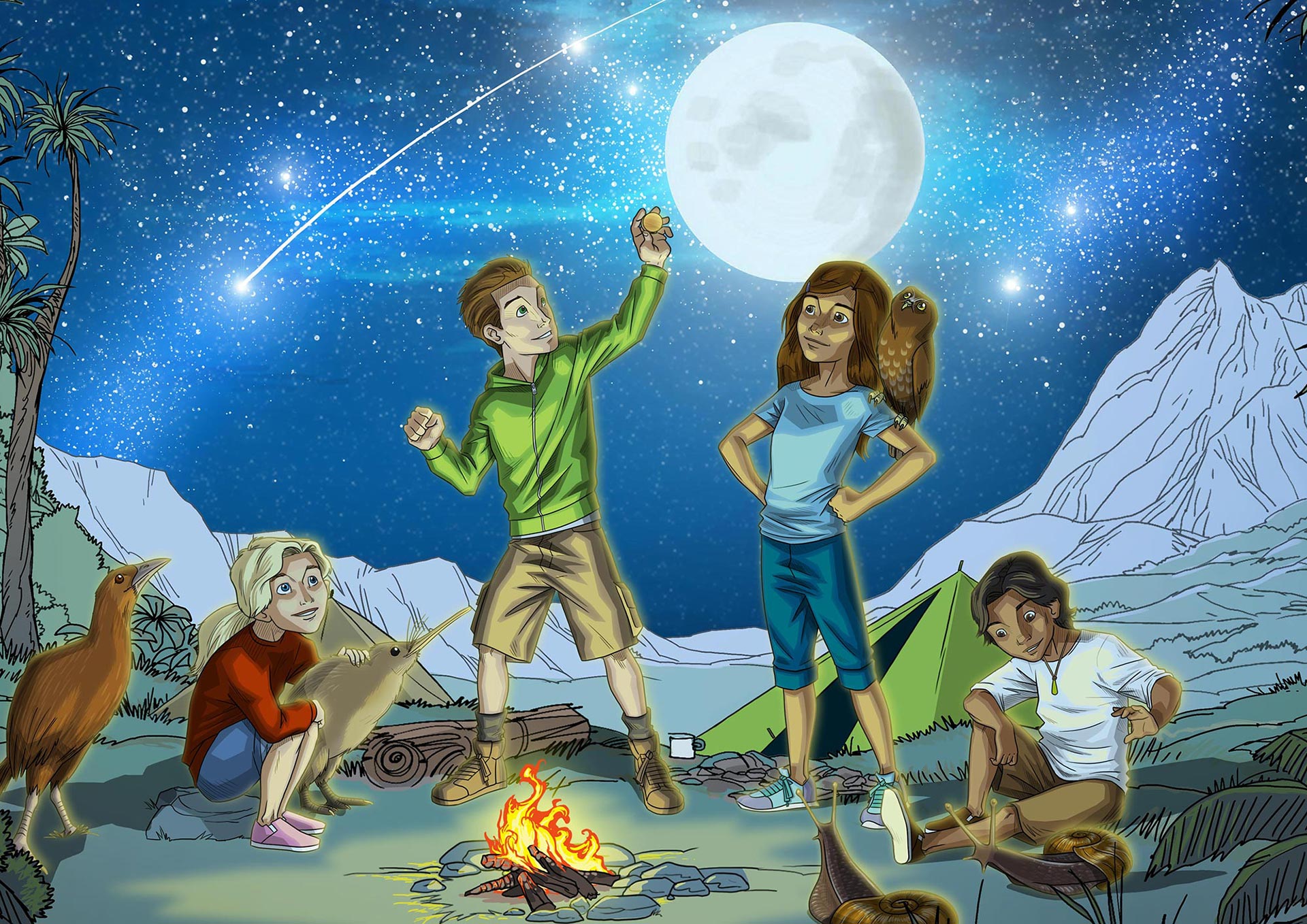 Alan created a range of artworks for the Department of Conservation's Become a Kiwi Guardian campaign, which promoted kids exploring nature and being aware of nature conservation efforts.