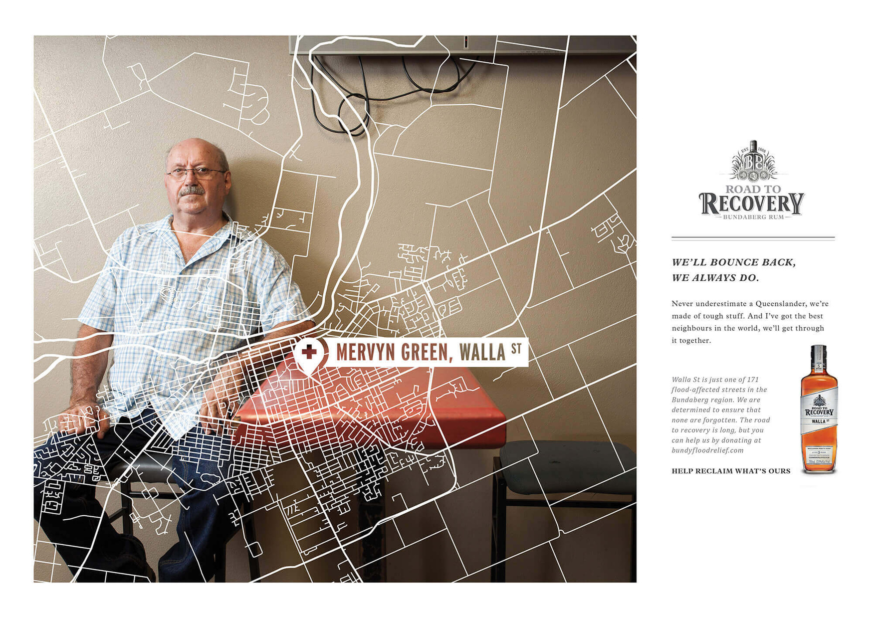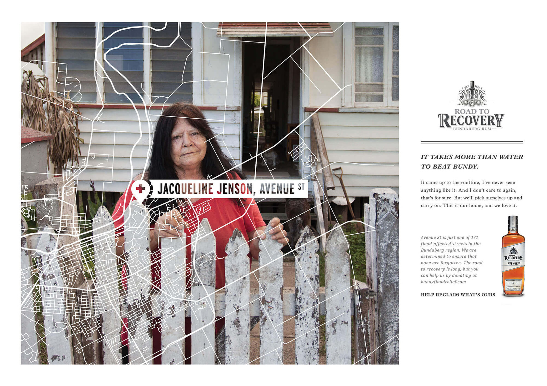 In 2013, the worst flood in Queensland’s history devastated the city of Bundaberg, displacing thousands. The region desperately needed an economic boost following the disaster, so Bundaberg Rum decided to use its name to get visitors back. In short, we would turn a disaster zone into a tourist destination. We staged a special relaunch of the rum called ’Road to Recovery’. Each bottle was labeled with the name of a flood-affected street. The bottles were only available from the distillery and the campaign brought thousands to the town. All profits from sales went towards flood relief.